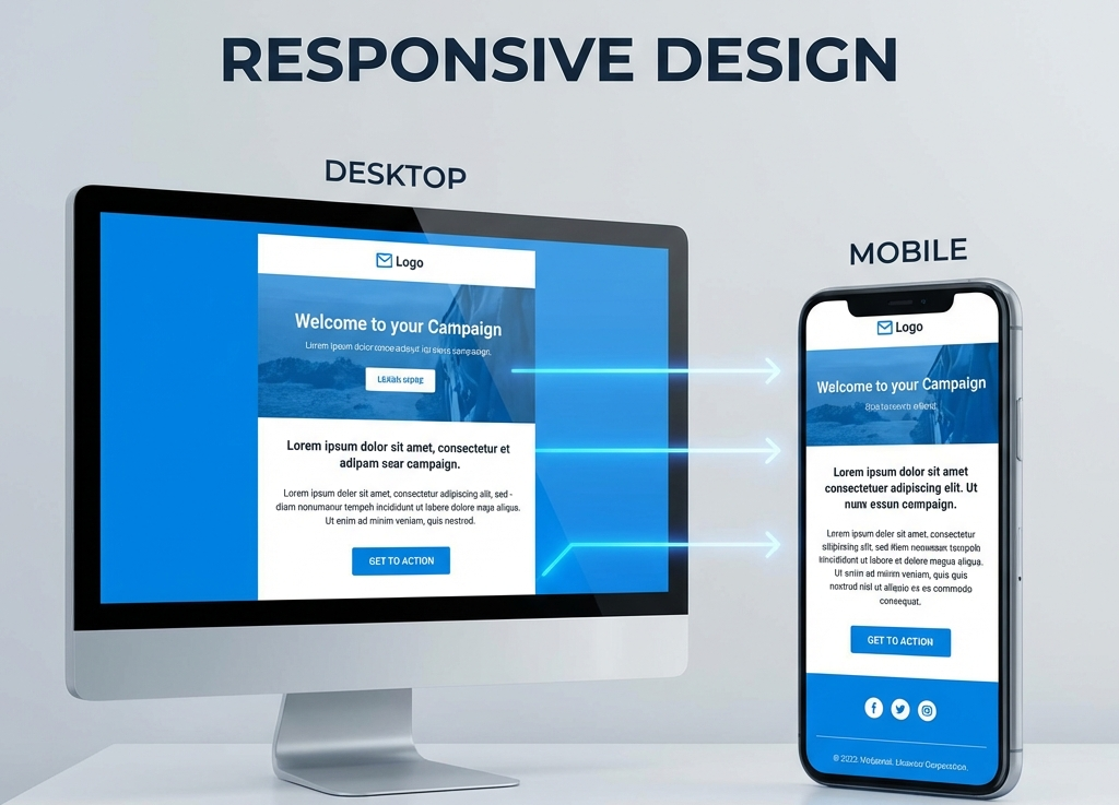 Asegúrate de que tus imágenes tengan siempre un ancho del 100% del contenedor. En escritorio, puedes limitar el ancho máximo del email (lo estándar es 600px) para que las líneas de texto no sean eternas, pero la imagen siempre debe adaptarse al ancho disponible en pantallas pequeñas.